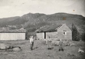 På bildet under er Kristianna, Rasmus og Reidun Fimland i gong med å slå stølskvia
